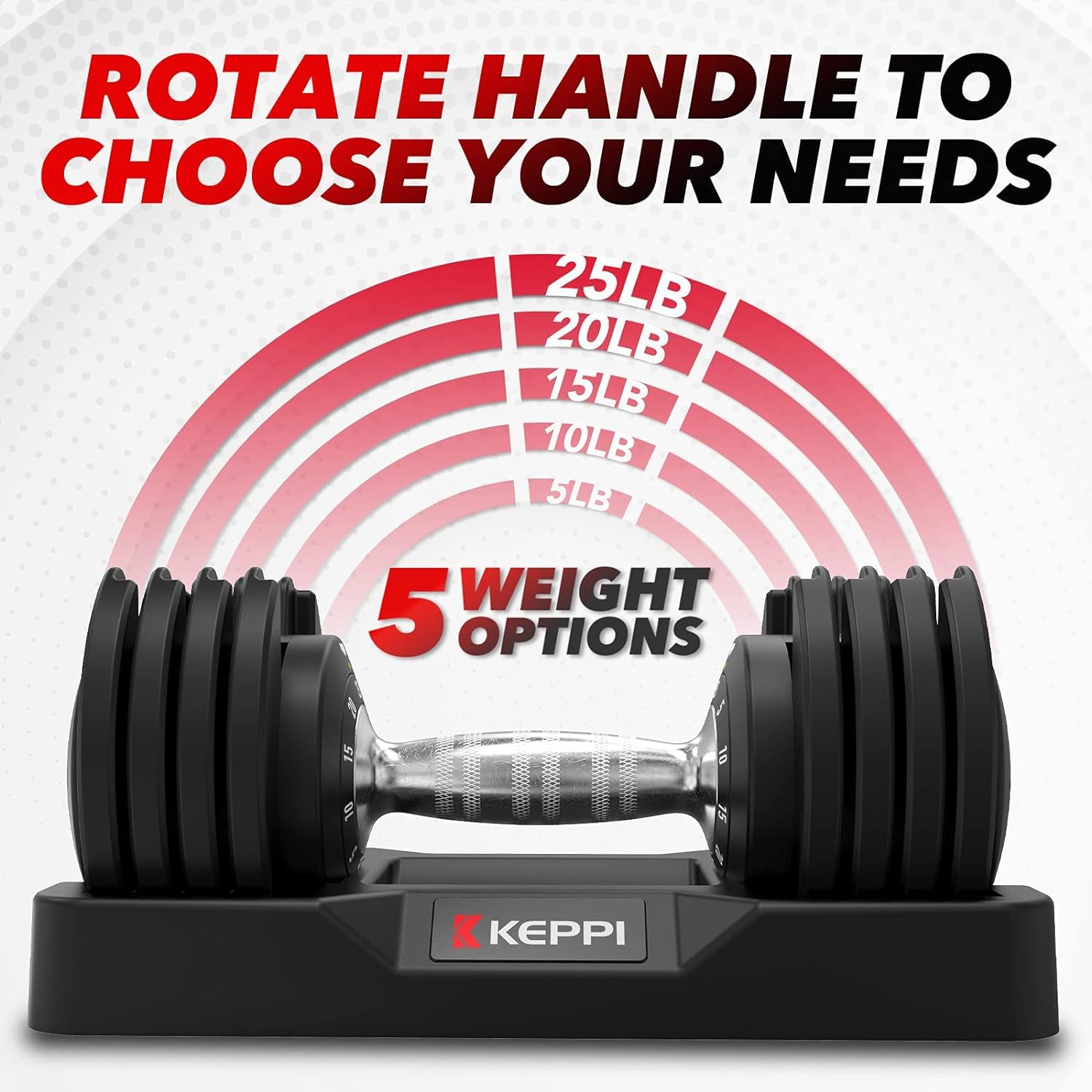 Keppi Adjustable Dumbbells Set-25lb/40lb/55lb/60lb, Anti-Slip Metal Fast Adjust Weight Handle, Exercise & Fitness for Full Body Workout – Adjustable Dumbbell Series
