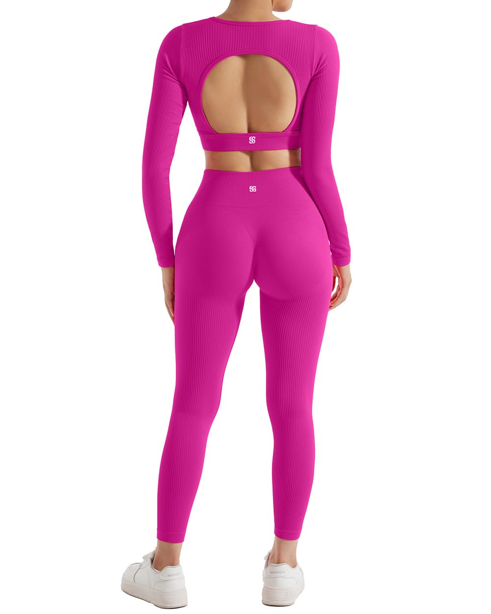 SUUKSESS Open Back Long Sleeve Scrunch Butt Booty Leggings Seamless Ribbed Workout Sets 2 Piece Outfits