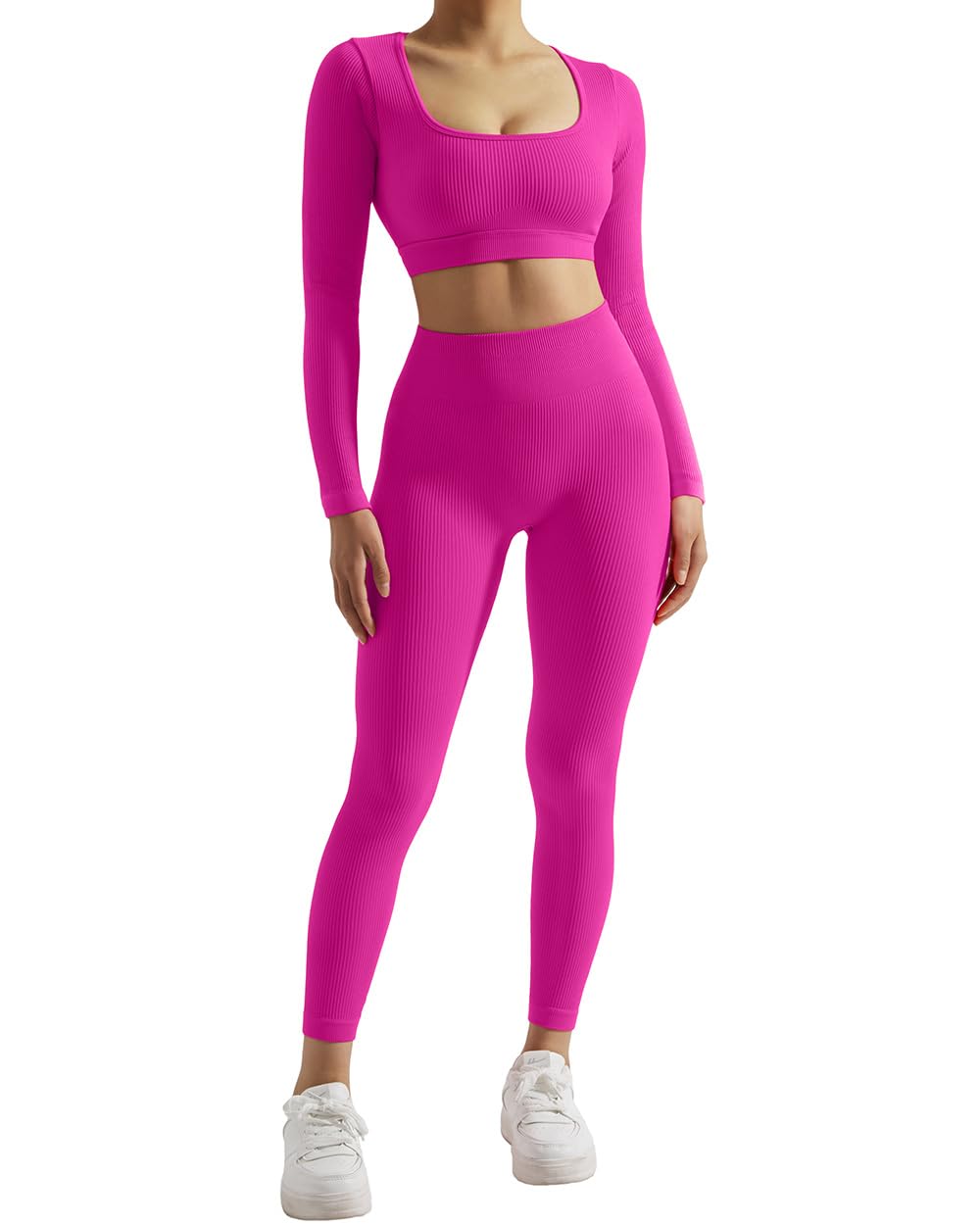459 reviews for SUUKSESS Open Back Long Sleeve Scrunch Butt Booty Leggings Seamless Ribbed Workout Sets 2 Piece Outfits
